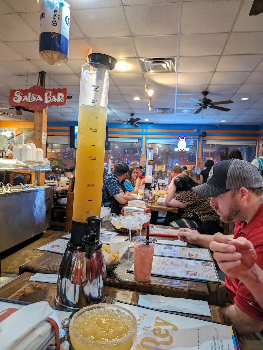 The salsa bar was fabulous! Give the spicy peanut one a try!! So good. The margaritas were top notch!! Love the veggie choices. Almost everything I could choose was available as vegetarian. Love the veggie potato fajita. My husband got the 3 tacos. They were not his favorite, but still good. He said next time he will choose something else. Cant wait to go back and try the margarita tower. lol